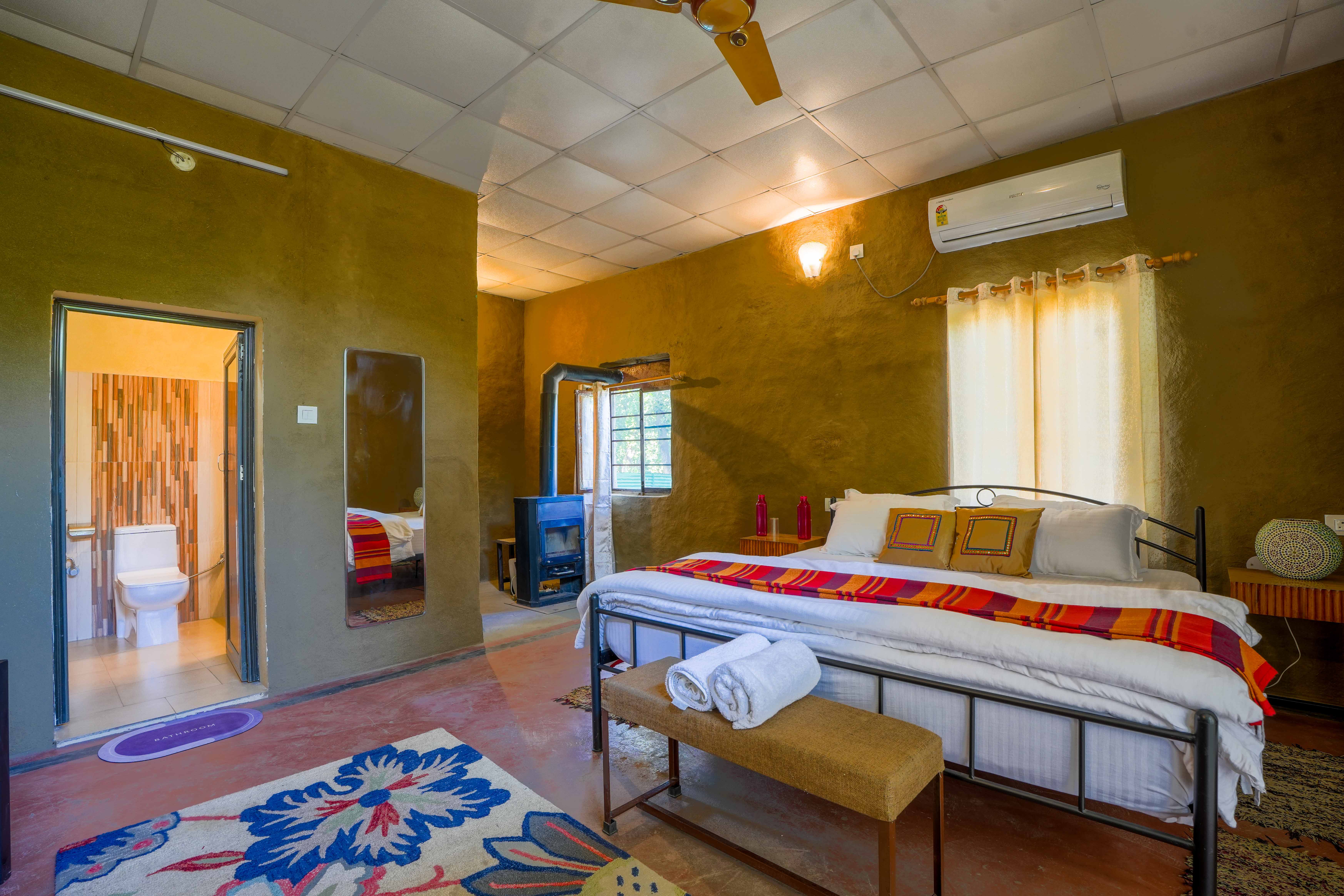 The air-conditioned Mud Houses are spacious en-suite rooms which gives direct access to the splash pool. Warmed by the wood fired stoves the room is a perfect for those who would like to experience the rustic charm of Carbery Acres.